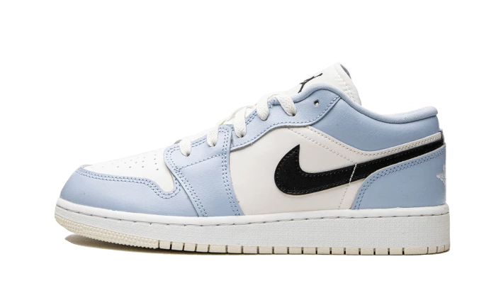 The Air Jordan 1 Low Ice Blue Black features an off-white leather base that is accented by light blue leather inserts on the mudguard, eyelets, collar and heel. There’s a black side Swoosh that adds a slight touch of somberness and matches the Jumpman on the tongue. A Wings is featured on the heel, while a white midsole and beige outsole complete the look.