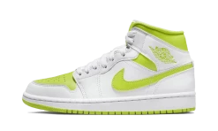 La Air Jordan 1 Mid White Lime se pare d’une base en cuir lisse blanc sur laquelle viennent s’ajouter des empiècements en cuir vert néon beaucoup plus colorés. Le swoosh, le col, les Jordan Wings, la toe box ou encore la midsole arbore ainsi la couleur pétante.