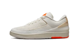 La Air Jordan 2 Low SP Shelflife Sail est constituée d’une base en denim blanc cassé qui est relevée par des empiècements en cuir blanc à la finition en peau de serpent sur le panel et la toebox. On note des touches de orange sur la languette avec le branding et sur l’outsole qui apportent un contraste à l’interprétation. L’ensemble repose sur une semelle beige.