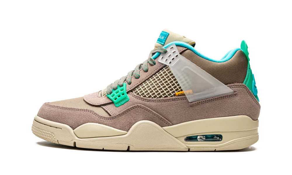 La Air Jordan 4 Retro Union Taupe Haze est dotée d’une base premium qui mêle mesh et suède qui est agrémentée par quelques superpositions en bleu clair et vert clair qui affichent les différents brandings. Néanmoins, l’empeigne se pare majoritairement de la couleur Taupe Haze qui va du mudguard jusqu’au talon. Une belle semelle beige vient parfaire la création.