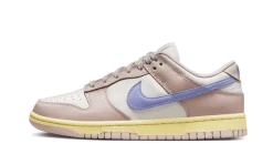The Nike Dunk Low Pink Oxford White features an off-white leather base that is enhanced by leather inserts that feature the famous pink oxford on the eyelets, mudguard and quarter panel. The side Swoosh features a purple colorway that contrasts with the rest of the upper, while the stylish package is supported by a beautiful yellow midsole that adds a retro feel.